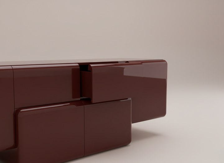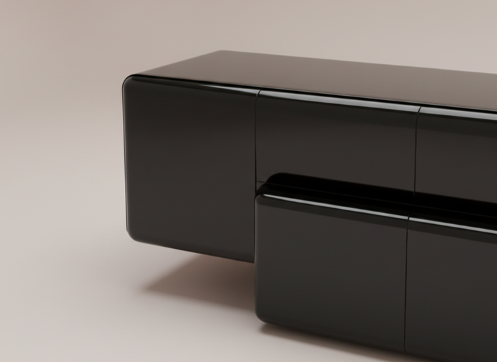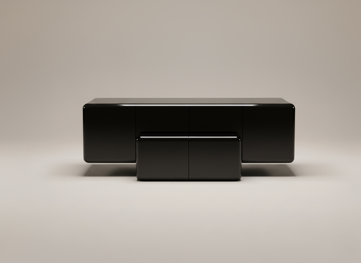 BL.ND introduces contemporary elegance to your interior with this premium sideboard, designed to be both a striking visual statement and a highly functional storage solution. Echoing the refined aesthetic of the collection, the piece combines sophisticated, high-gloss lacquer fortified with a nano-ceramic protective layer. This advanced finish delivers exceptional resistance to scratches and stains.