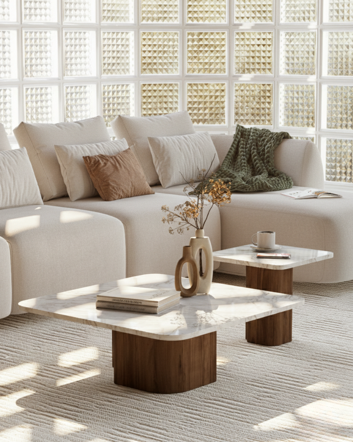The type of wood used for the dining tables, chairs, and sofas is natural solid wood. Cabinets and tables are manufactured with engineered wooden surfaces with natural wood veneer. - What type of marble is used?